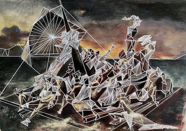 Le radeau de la méduse revisité. Acrylique sur papier - 40x30 - 2023 - Collection privée