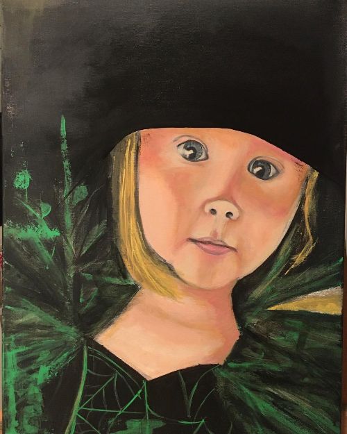Petite fille au chapeau de sorcière - Acrylique sur toile - 2020 - Collection privée