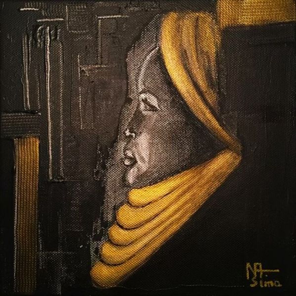 Femme au collier - Acrylique et pierre noire 20x20- 2021
